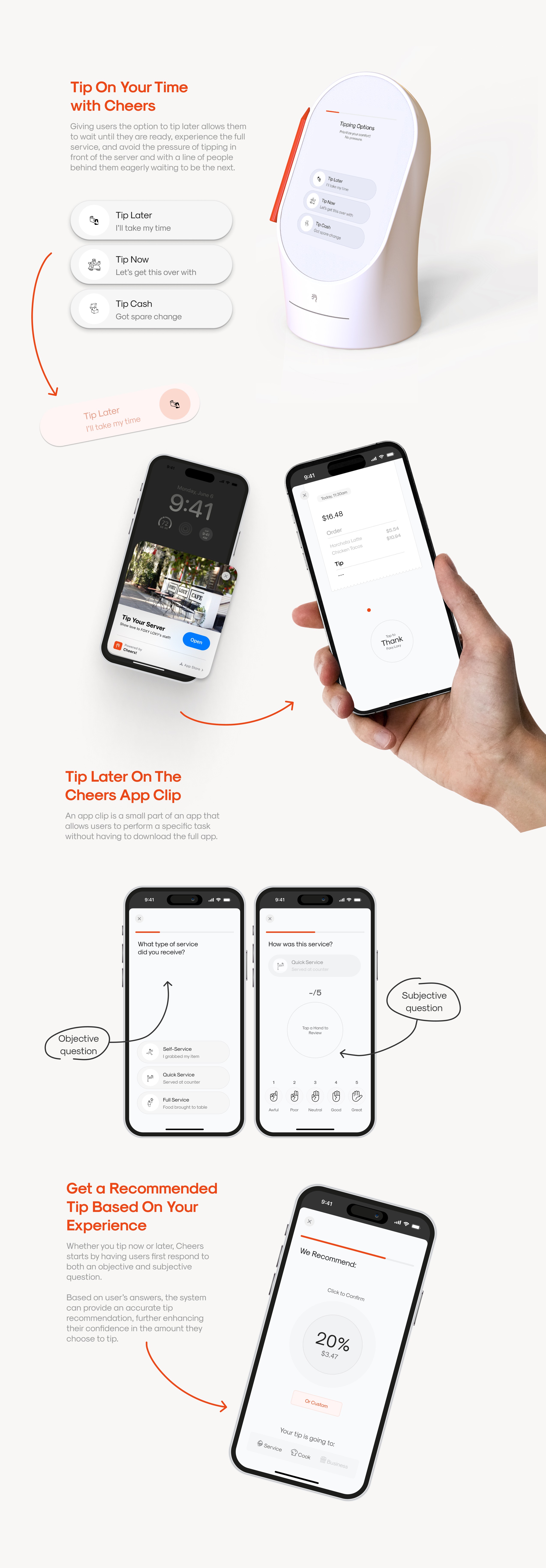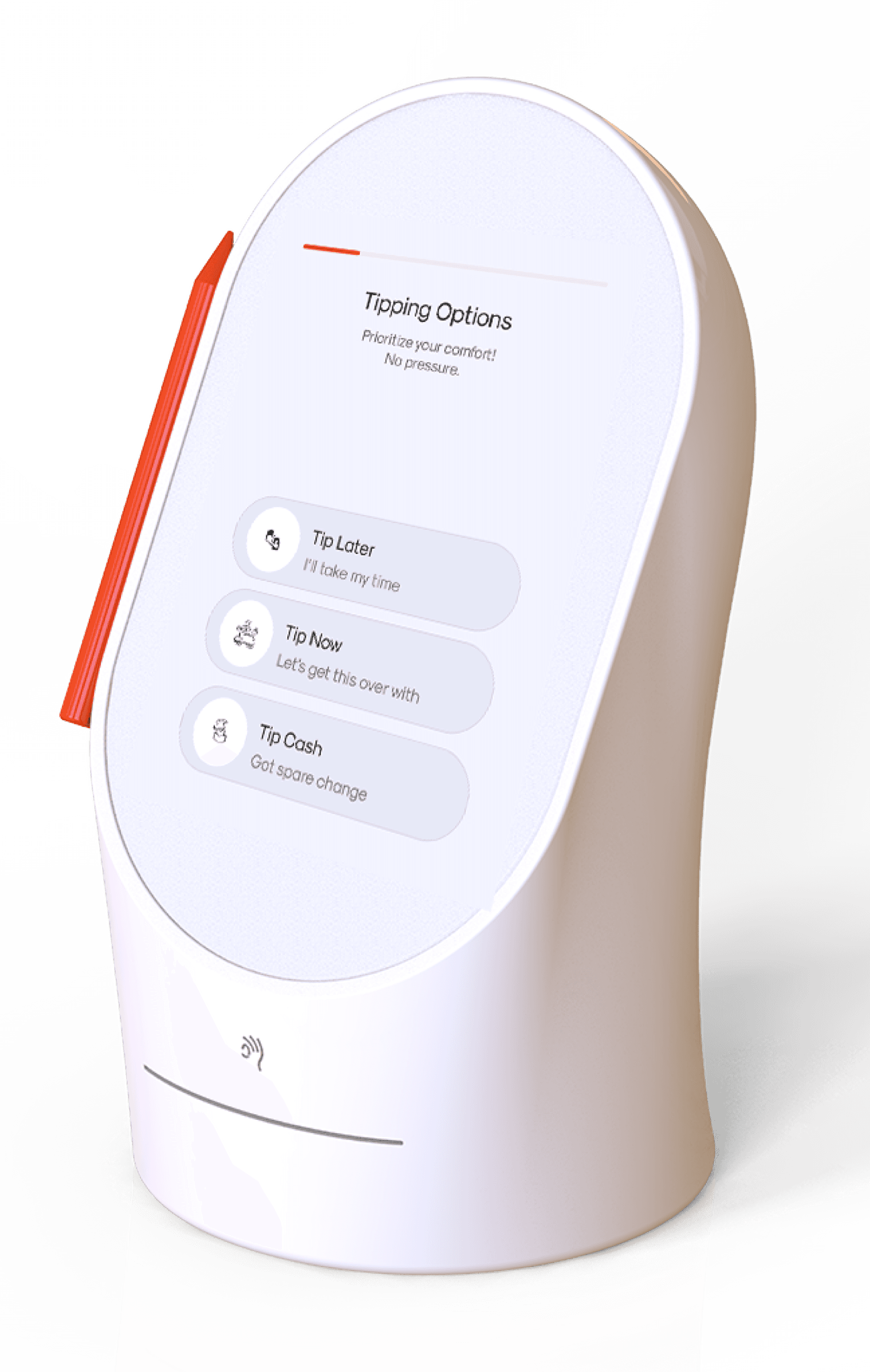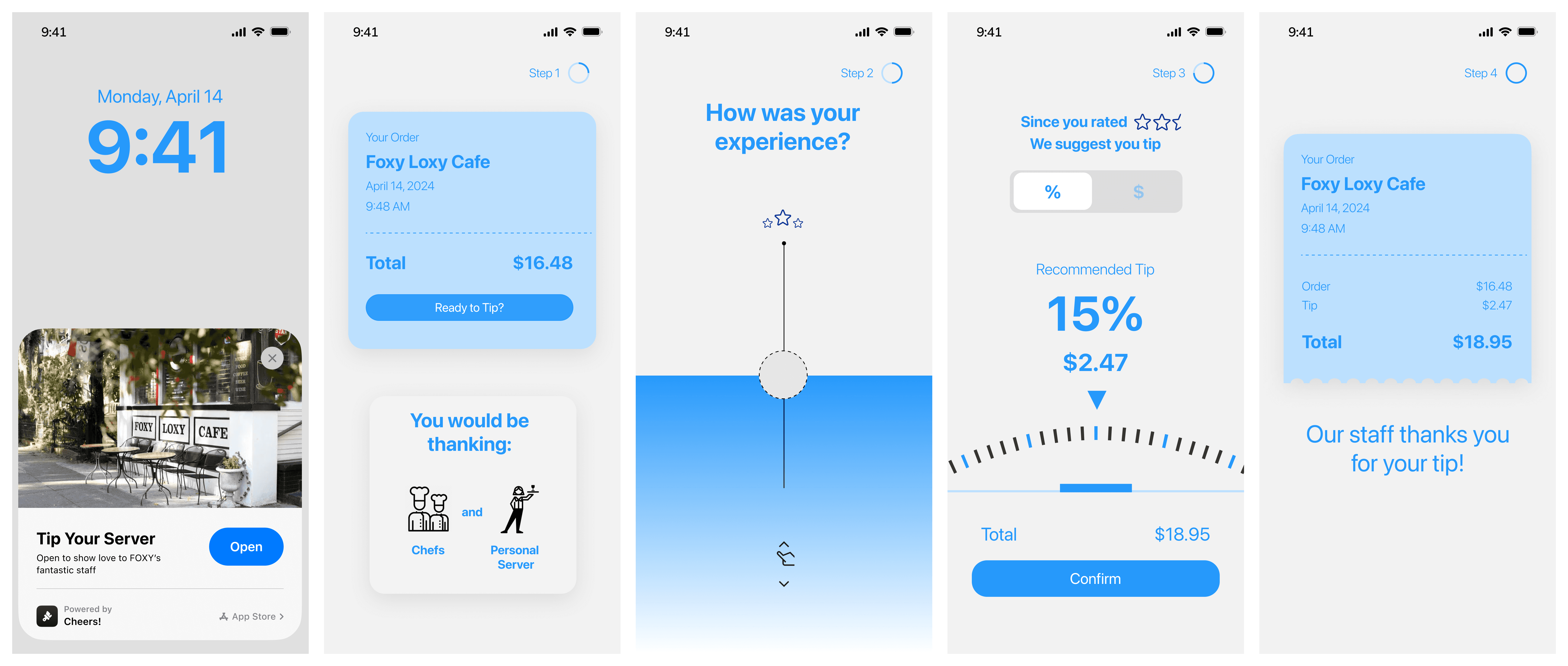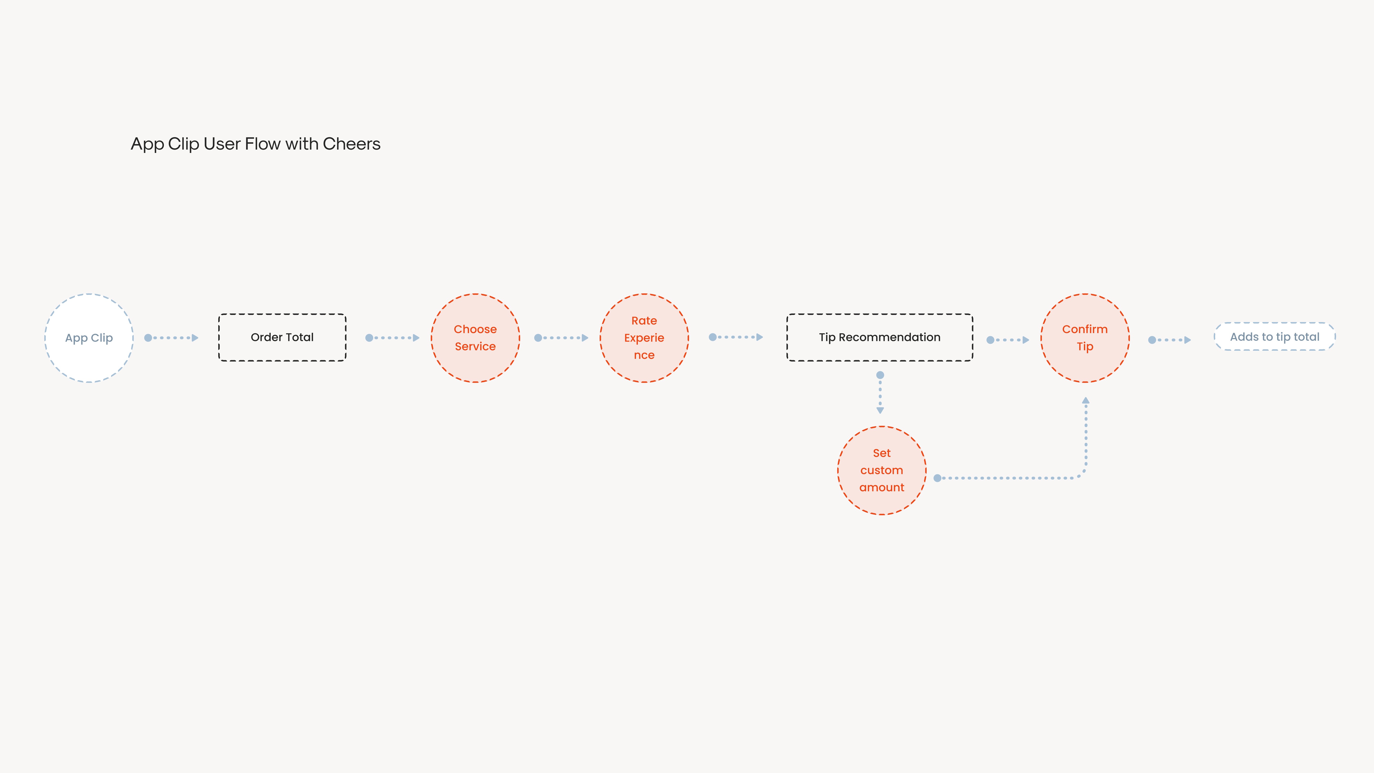 We explored an app clip solution—an RFID-activated app that doesn't require downloading—allowing customers to tip on their phones after their cafe experience, giving them the flexibility to make confident tips at their own pace.