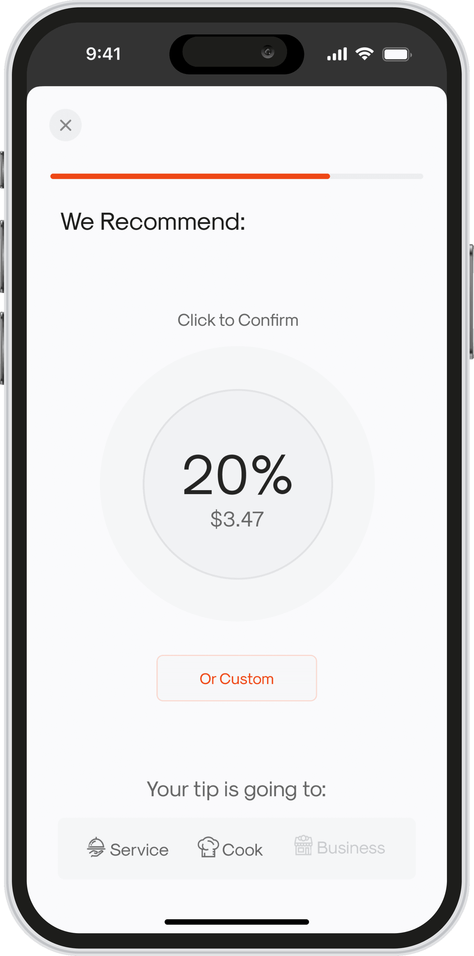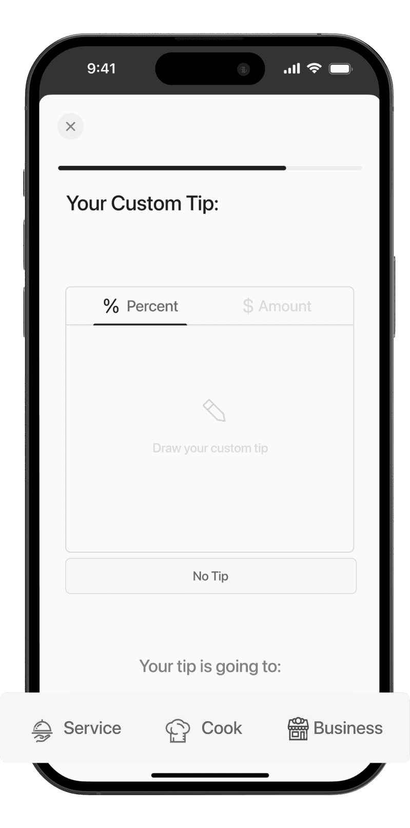 Choose to tip now on the terminal when you order, or tip later on your phone away from the server and after the full cafe experience.