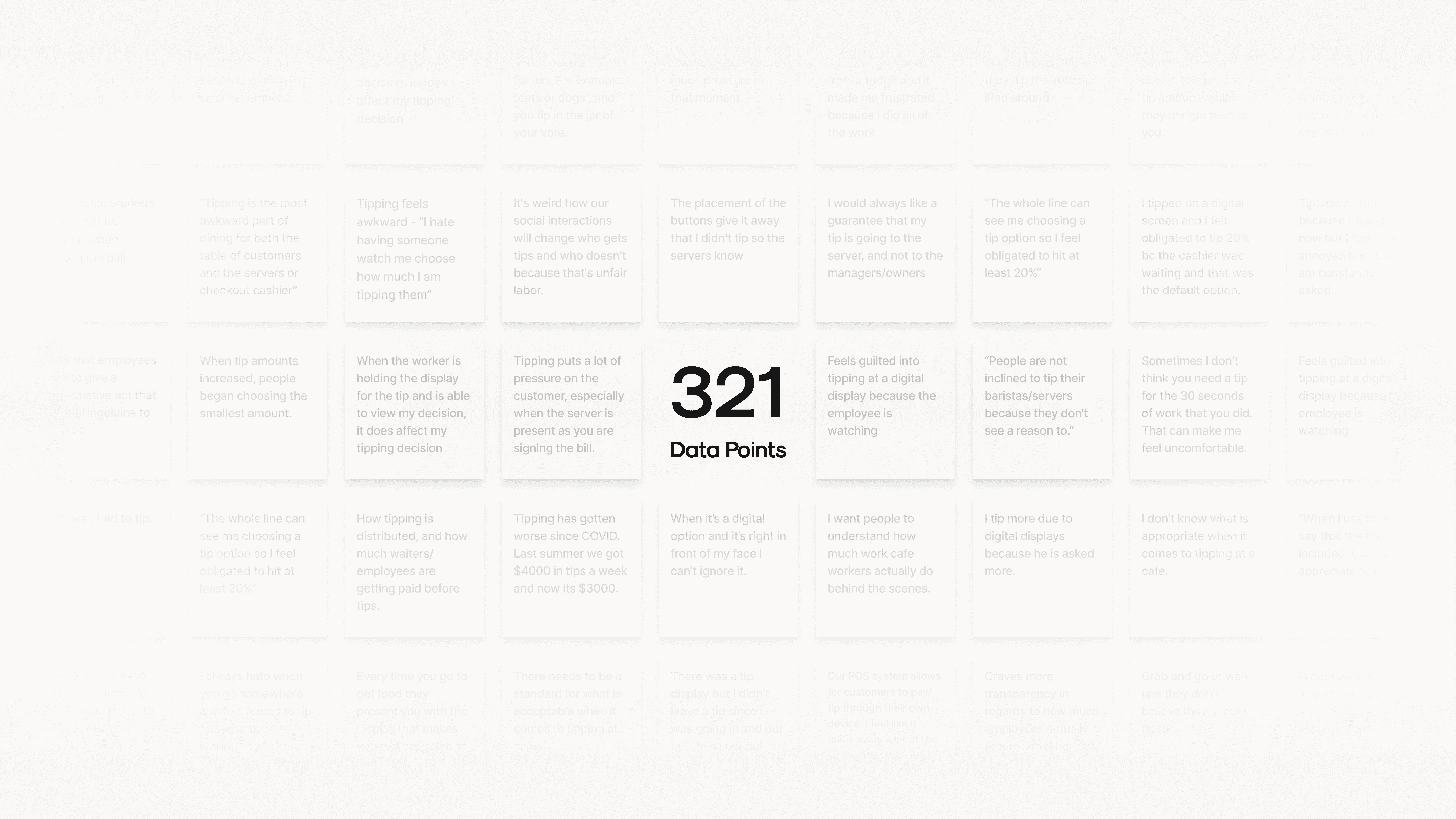 We gathered 64 responses—half from food industry workers and half from customers—and were surprised to learn how many people feel stressed when tipping.