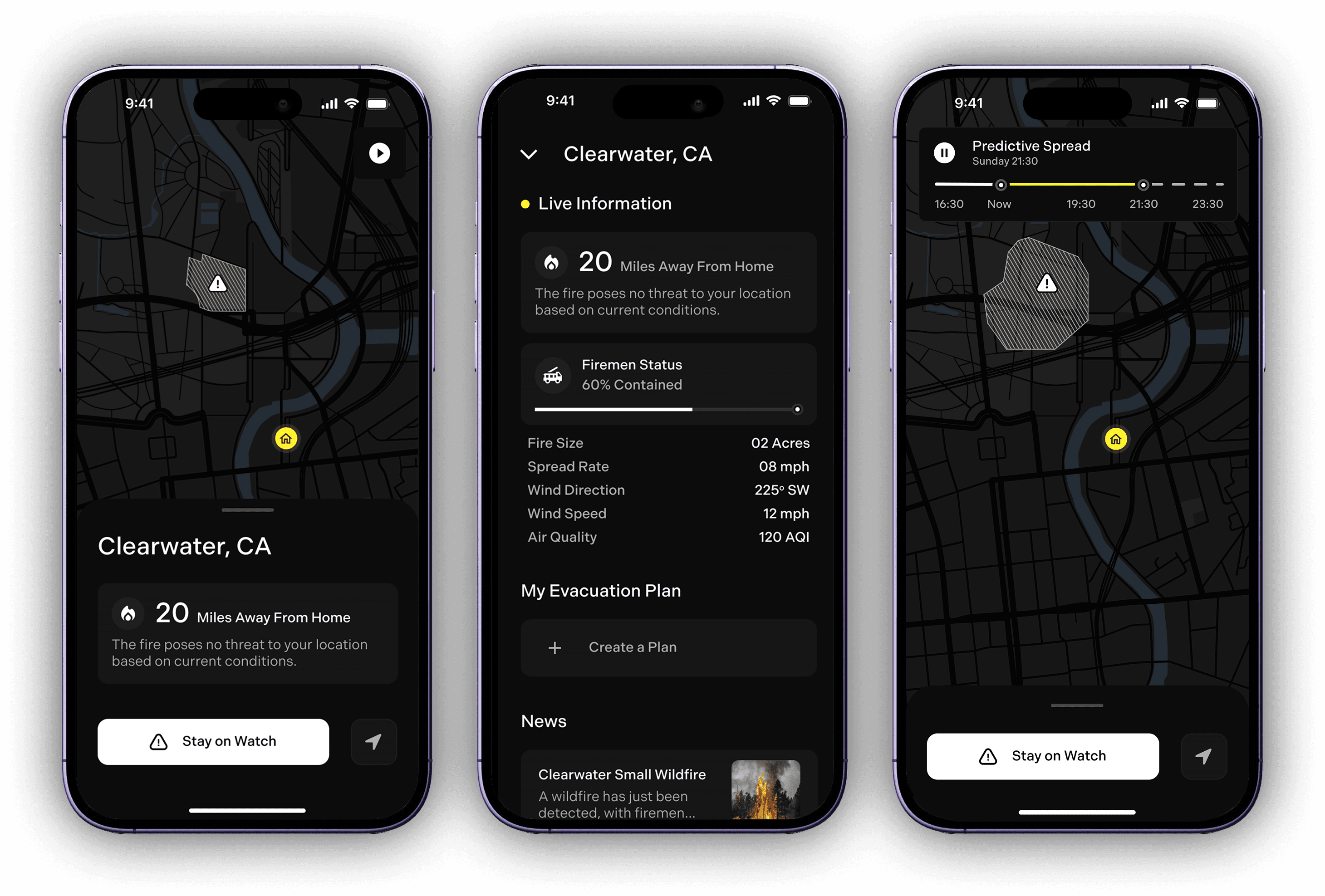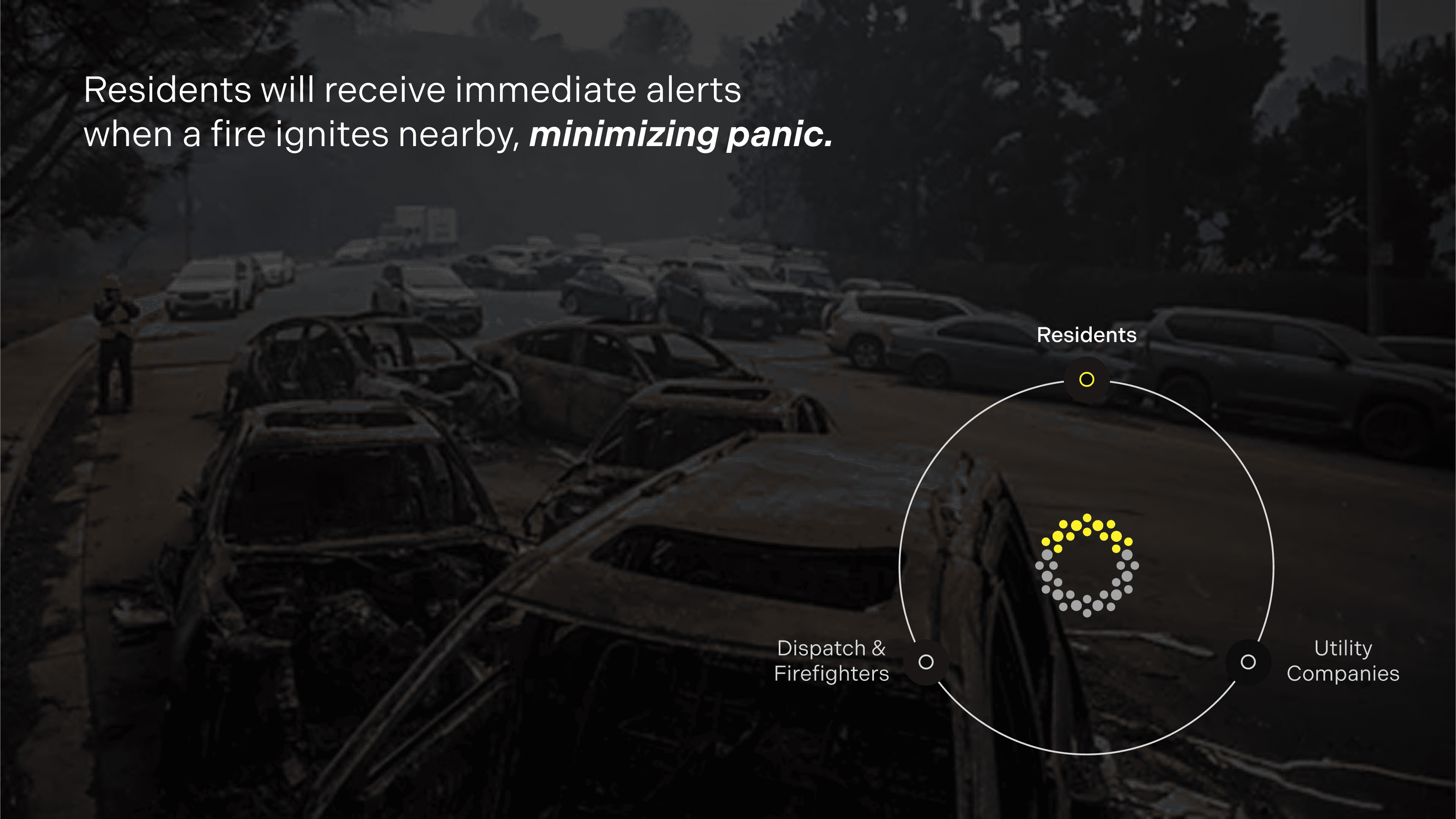 From the very beginning, we knew we wanted to solve for residents: keep them informed of dangerous fires nearby so they can stay informed, know when and how to evacuate, and prevent back-ups and panic.