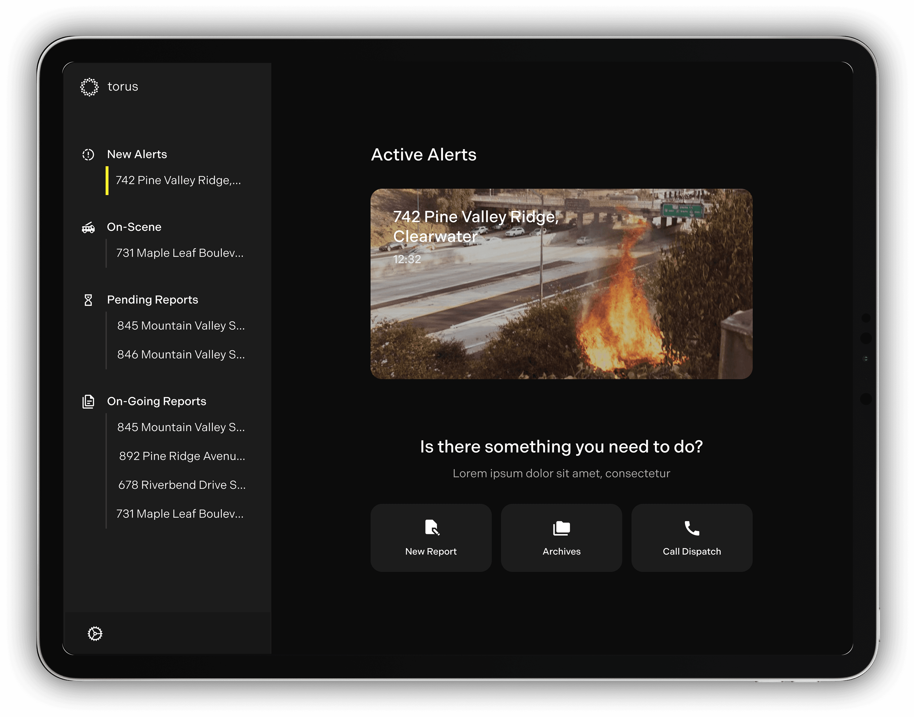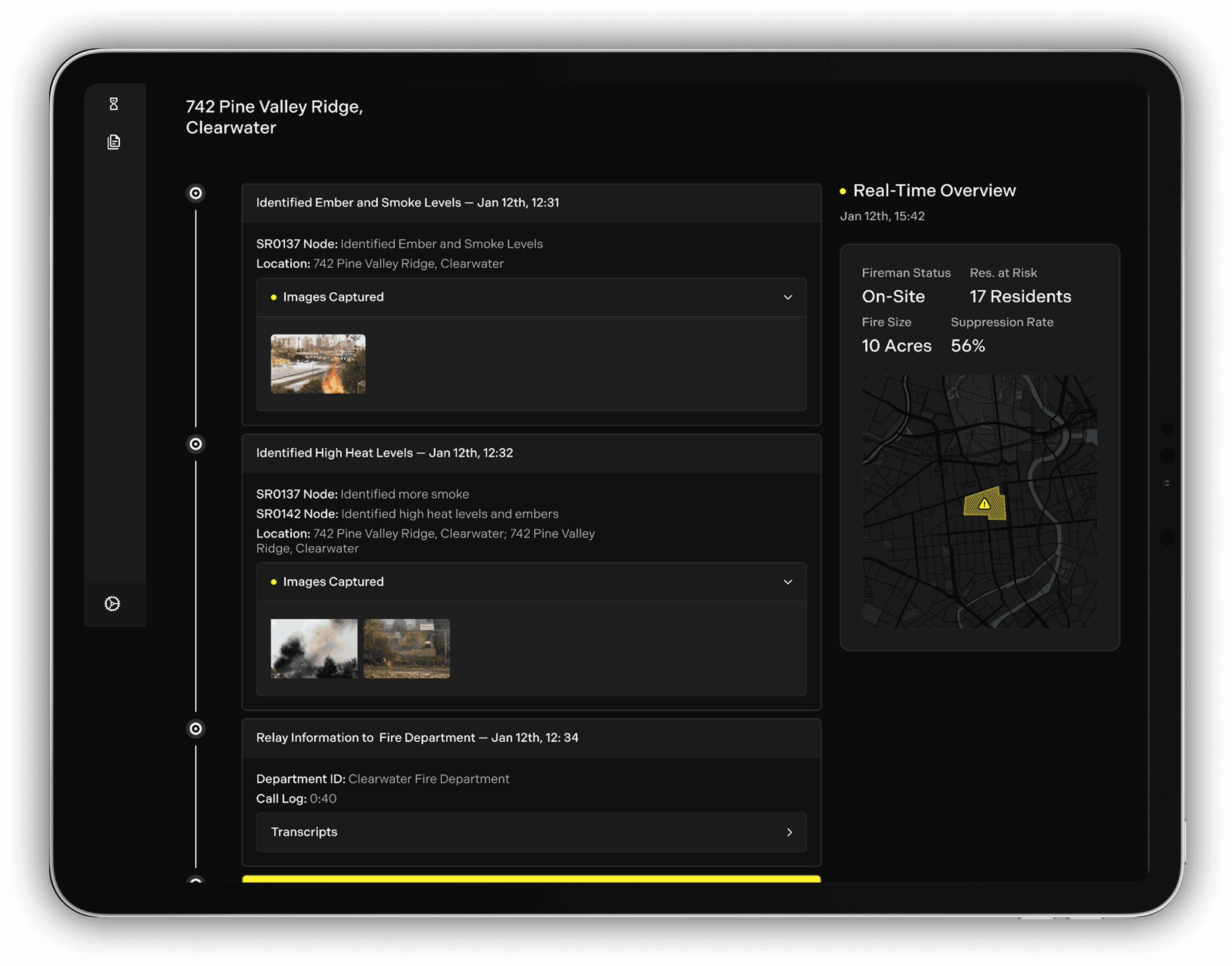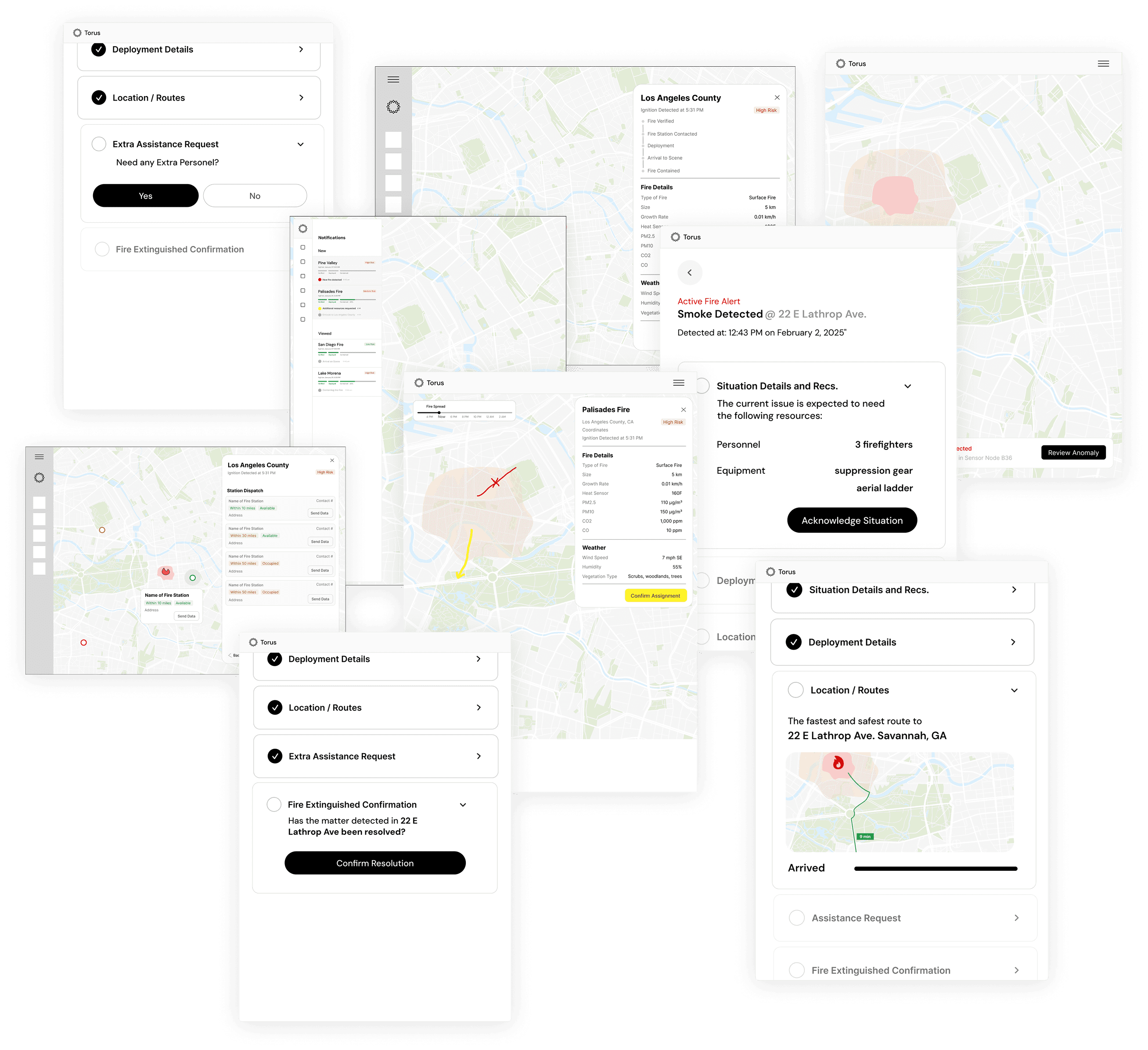 Dispatch centers are the first to receive fire alerts from Torus nodes. Their role is to verify the threat using the images and data provided, then determine which fire station responds. Throughout the incident, they stay in active communication with the fire team. AI assists by logging ignition times, incoming calls, and key developments, streamlining post-fire reporting.