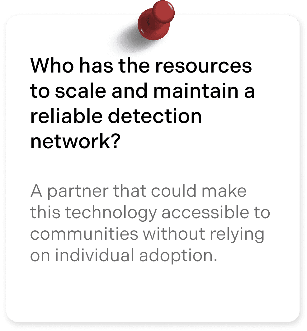 Our original goal was to make Torus a community-driven wildfire detection system, where residents could purchase and maintain nodes to protect their own homes.