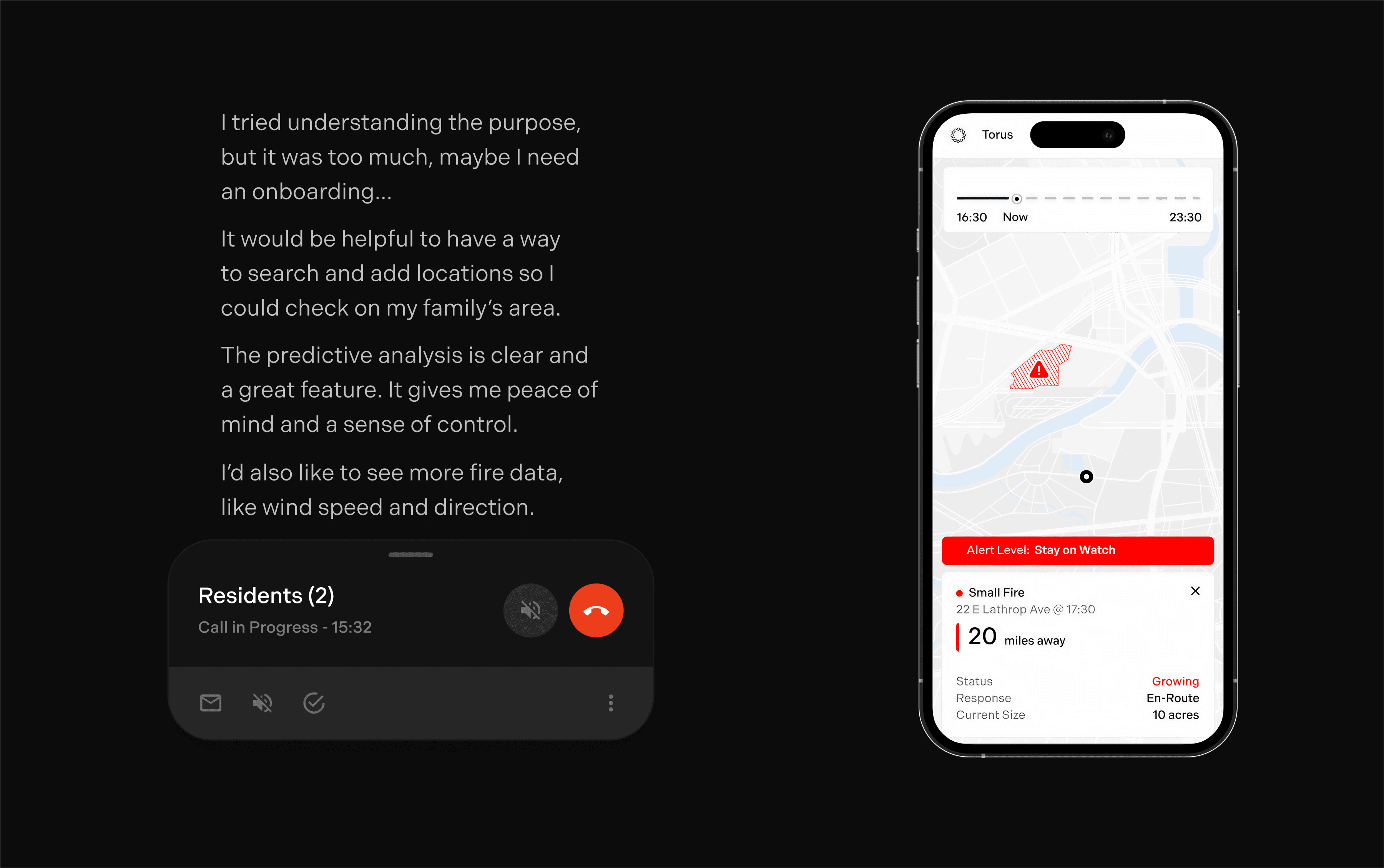 From the start, we iterated to understand residents' needs and expectations in handling hazards, and how Torus could help.
